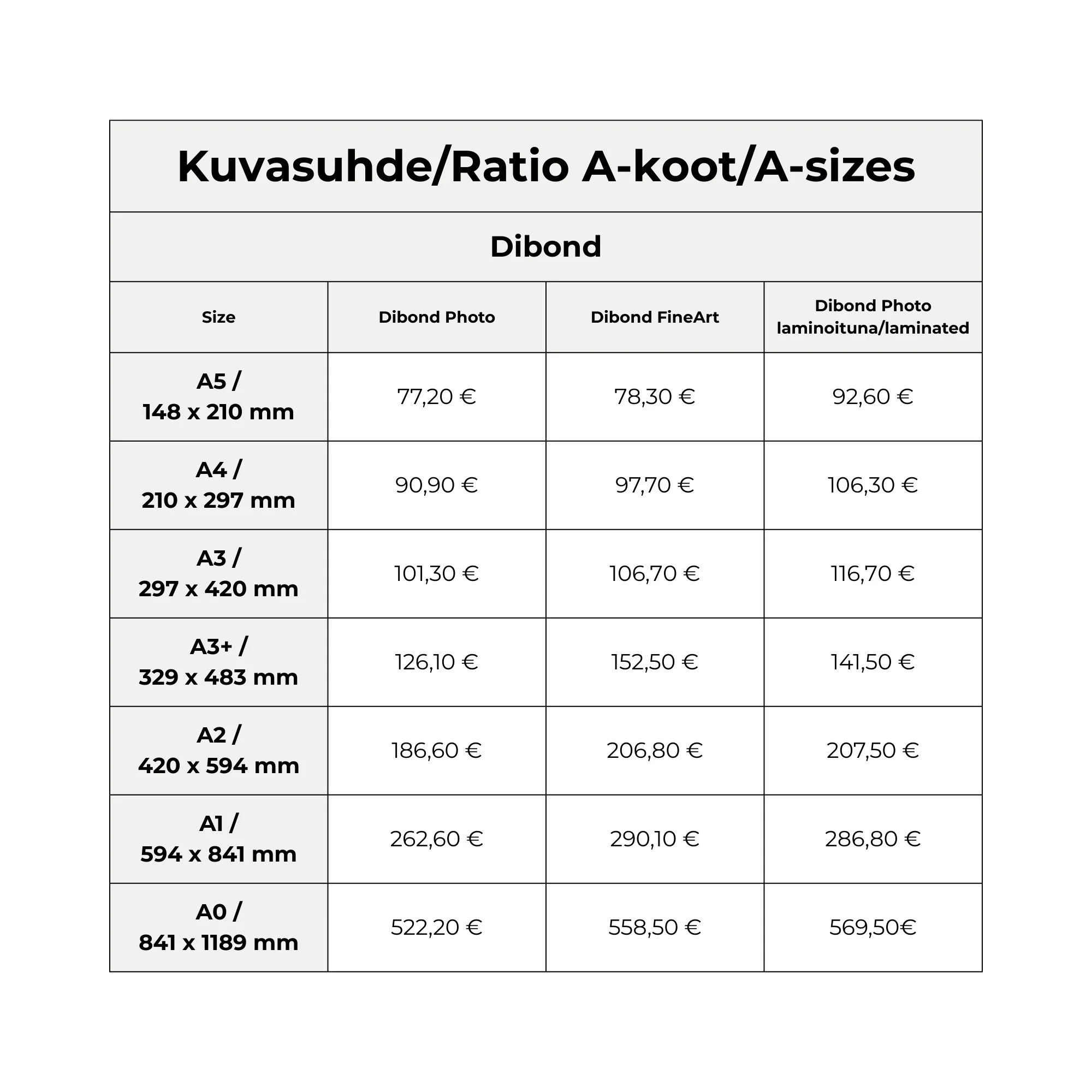 If you don't find the size you want in the price list, you can inquire about the price by sending an email to tarjoukset@dialab.com or by calling +358 40 810 3000.