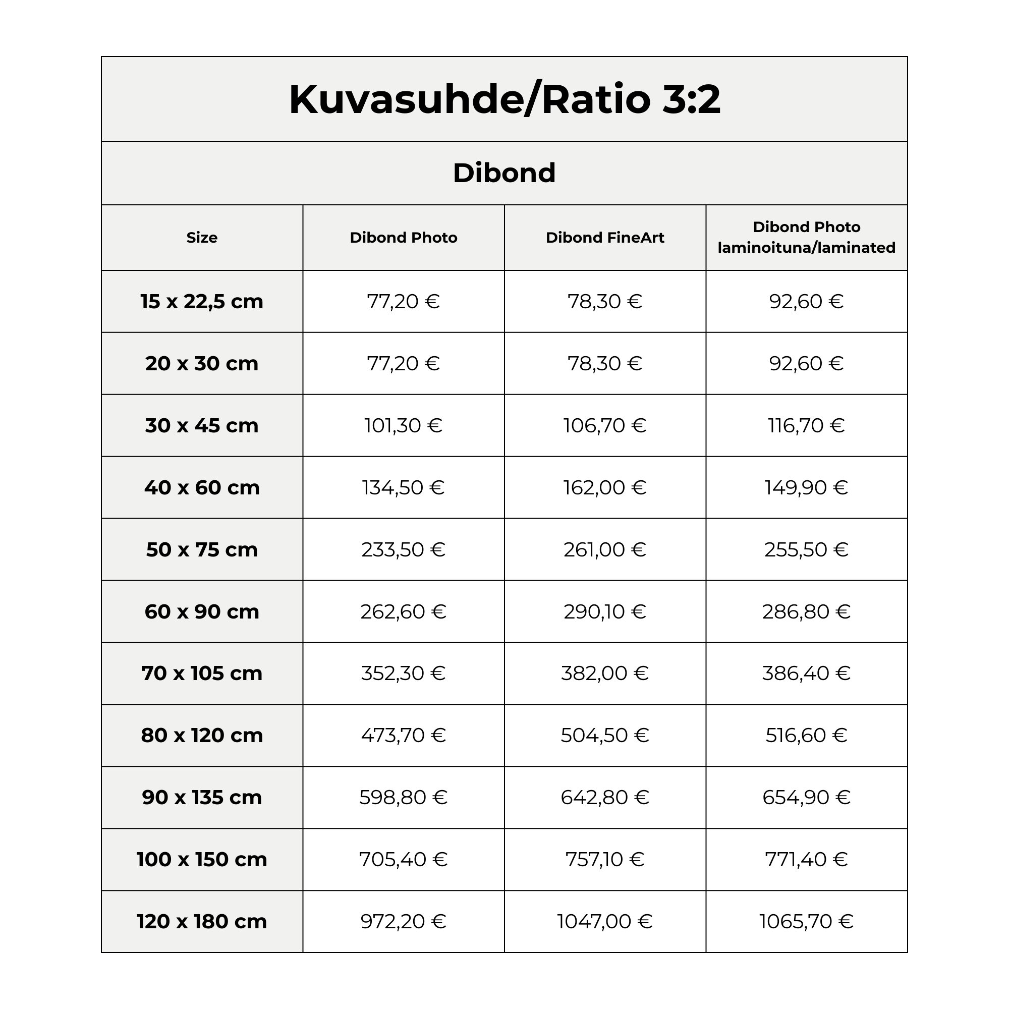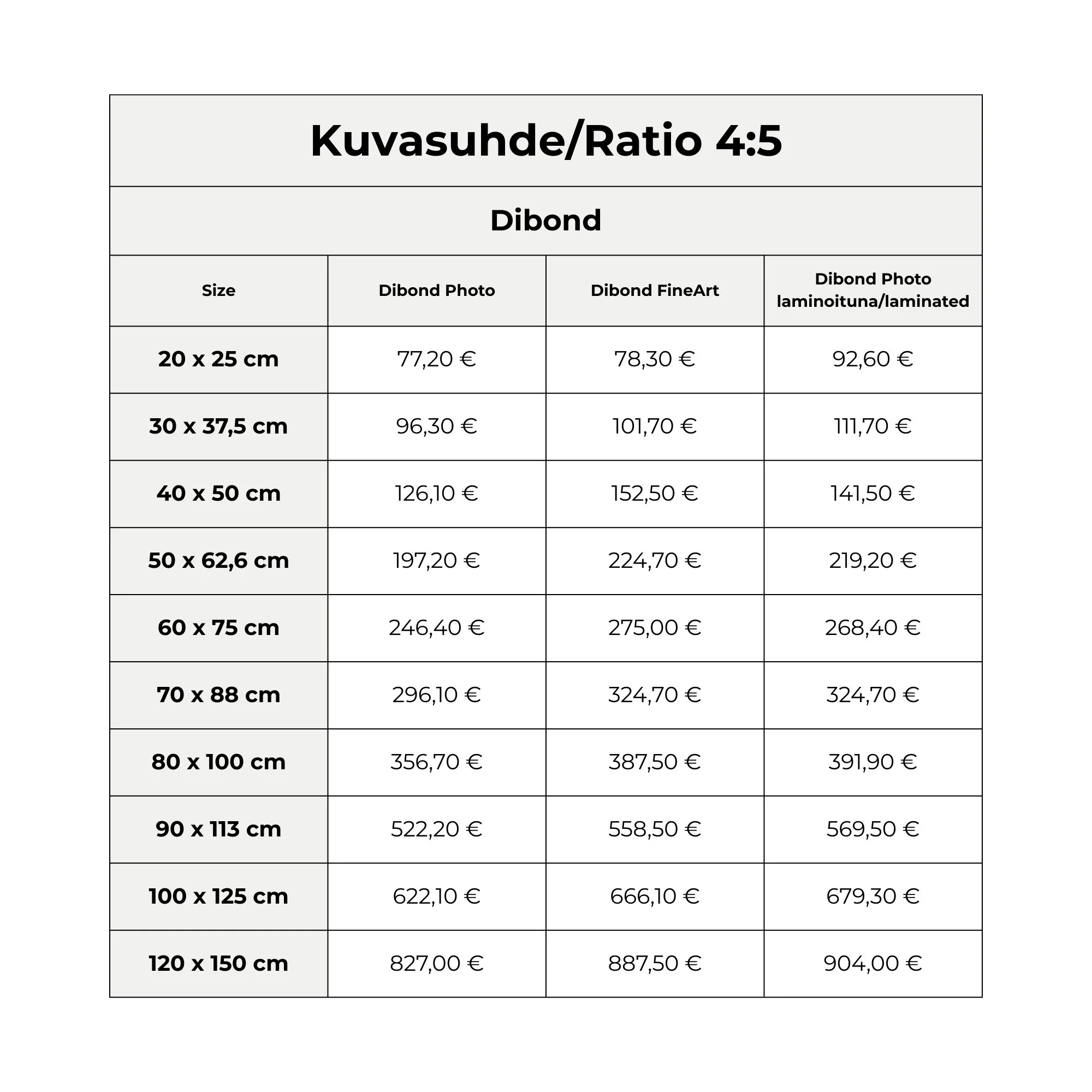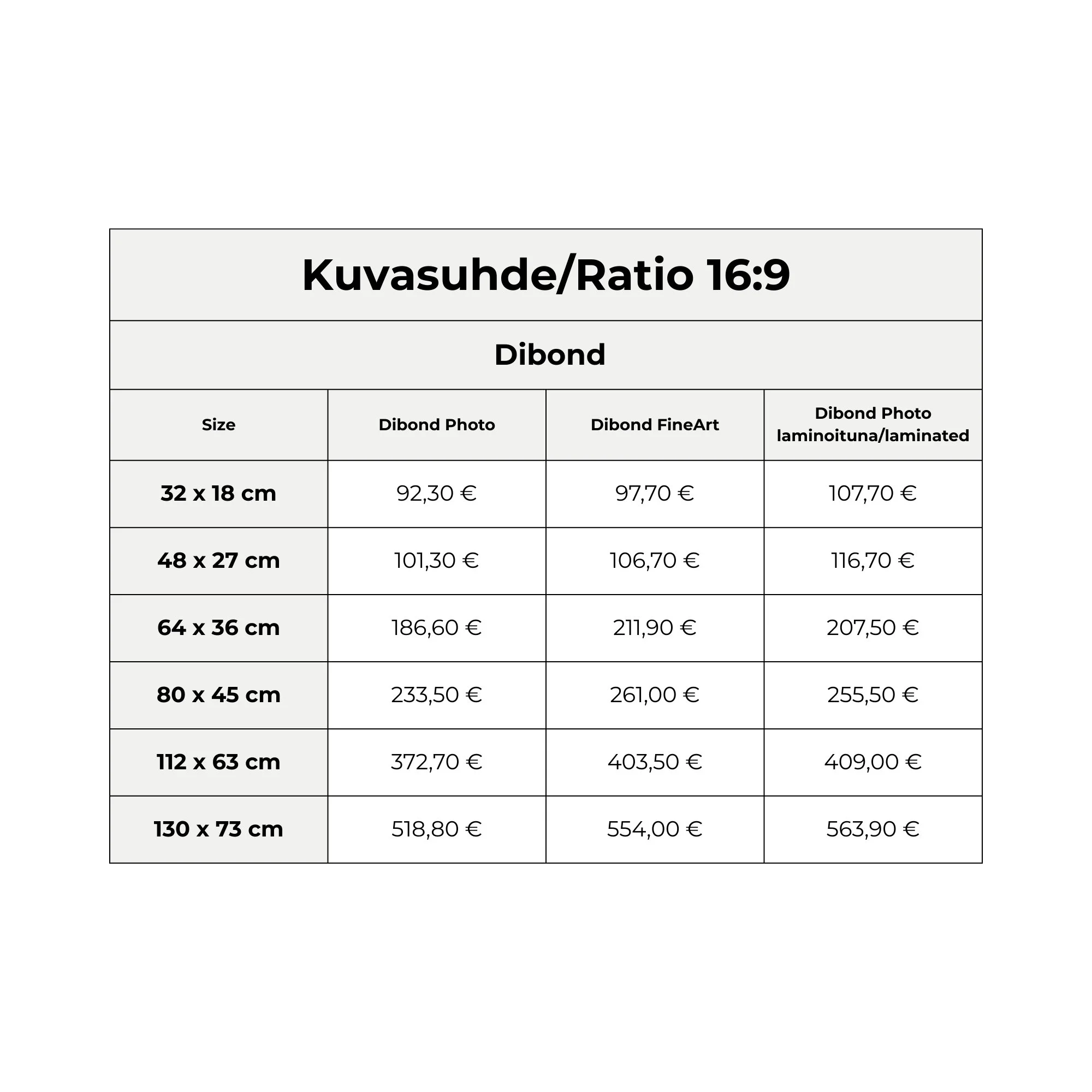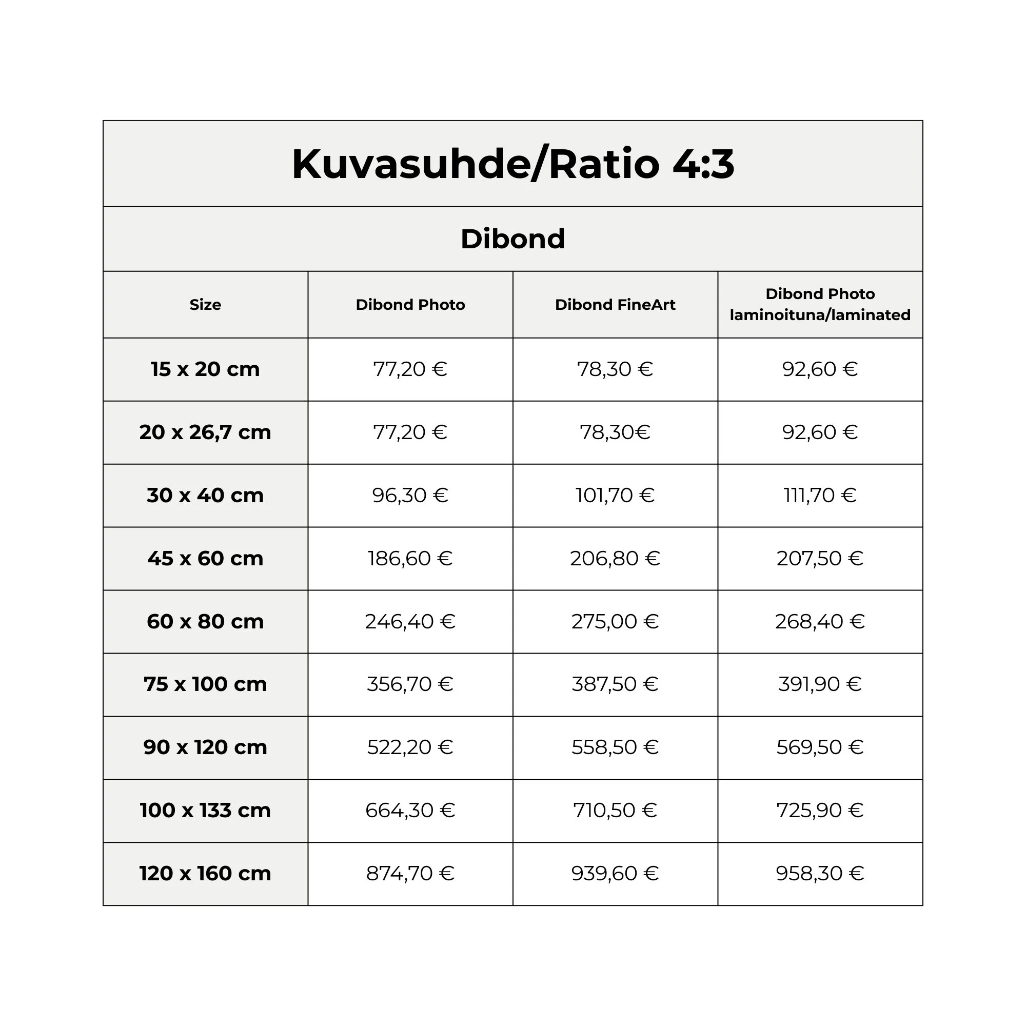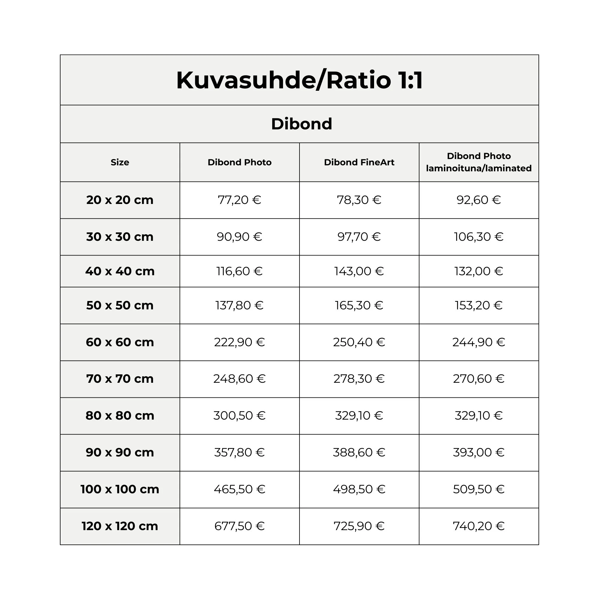 In pricing, the image size is rounded up to the next full ten centimeters. For example, 23x23cm = 30x30cm.