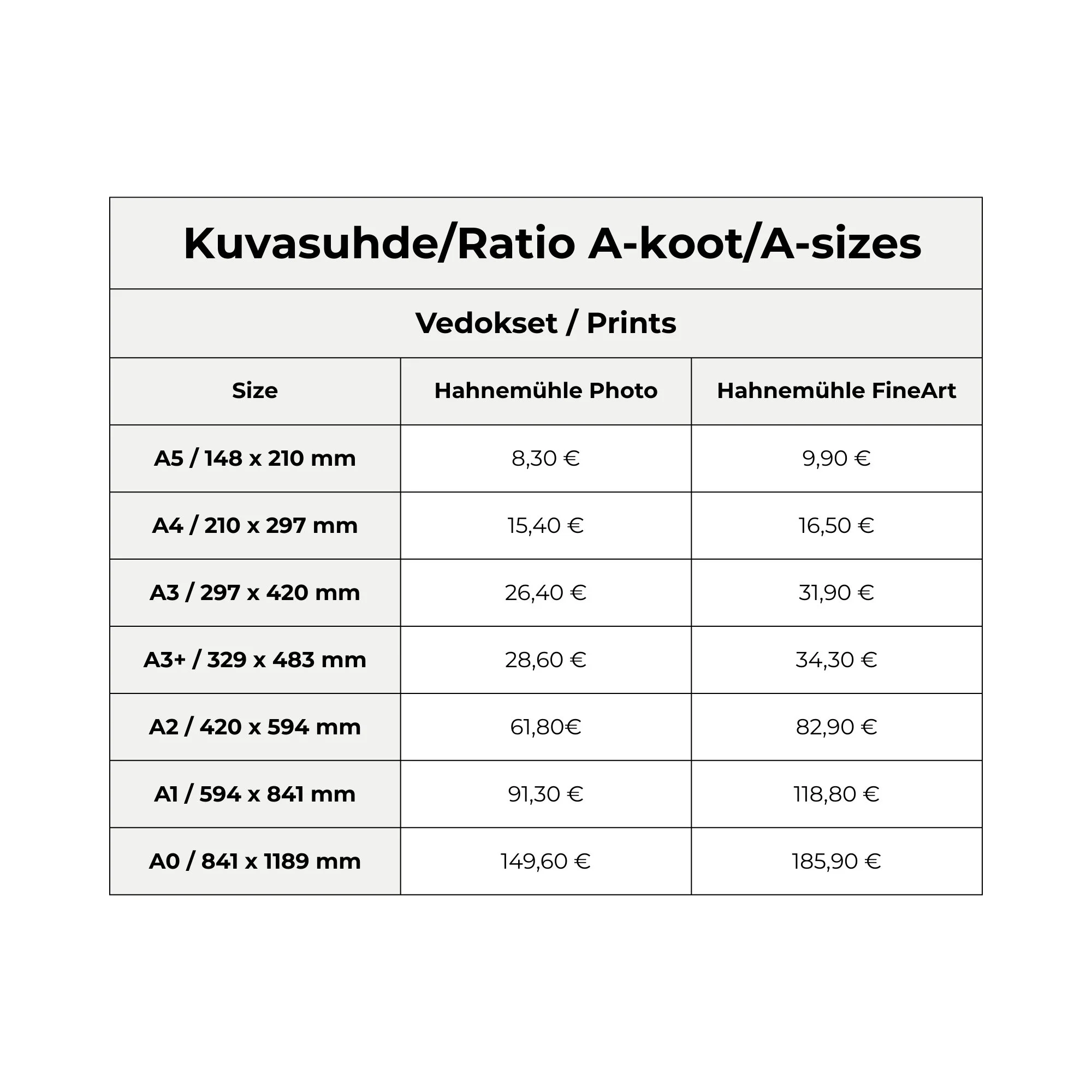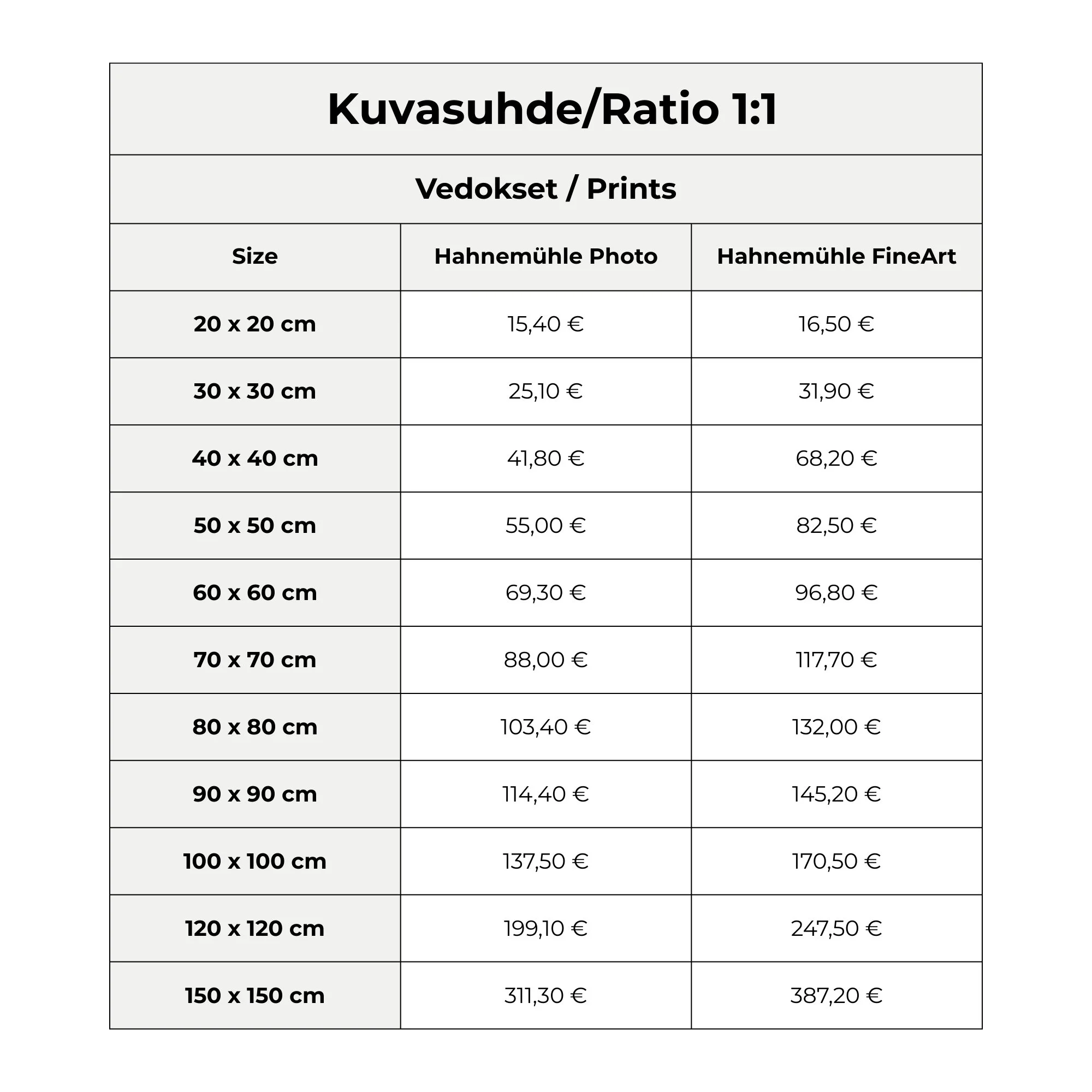 In pricing, the image size is rounded up to the next full ten centimeters, for example, 23 x 23 cm = 30 x 30 cm.
