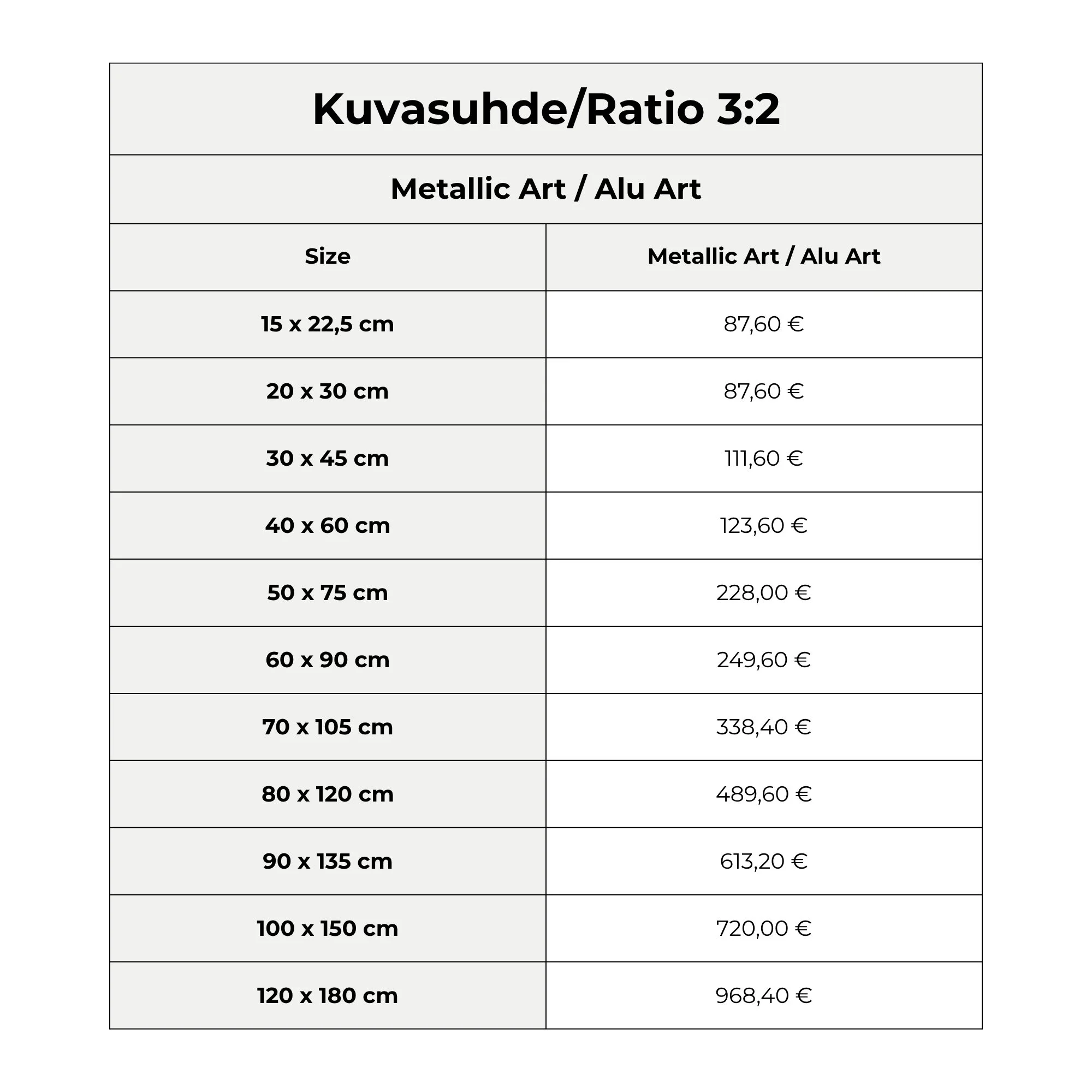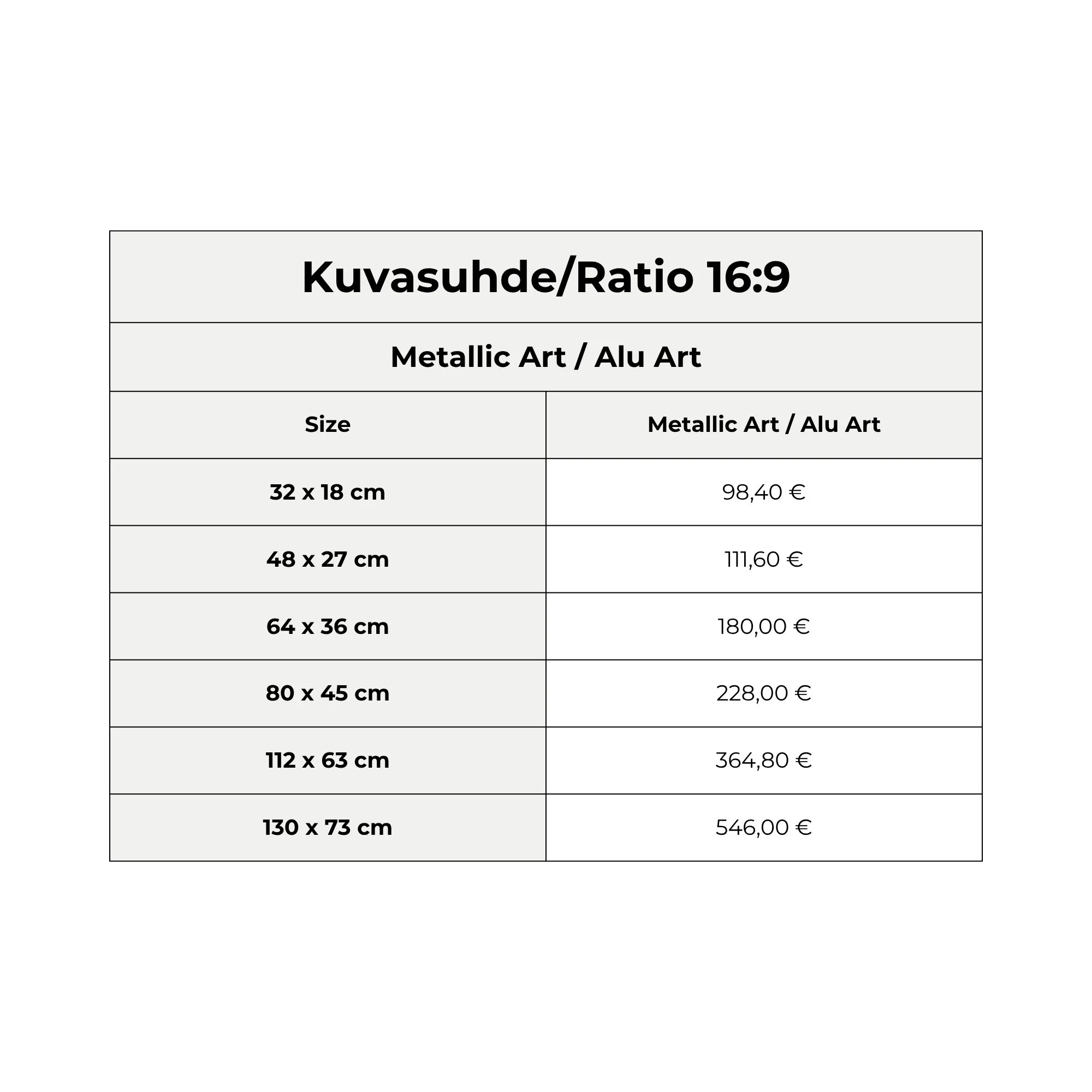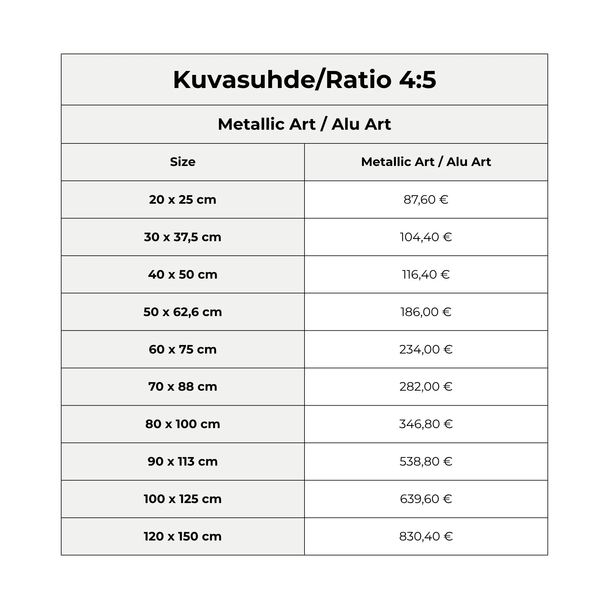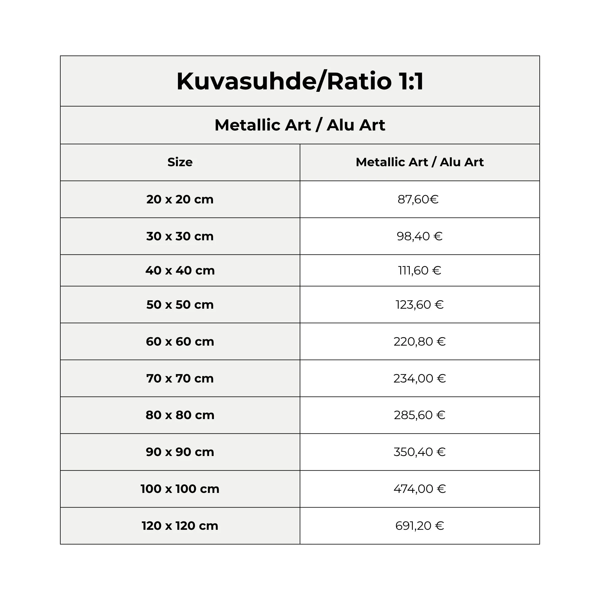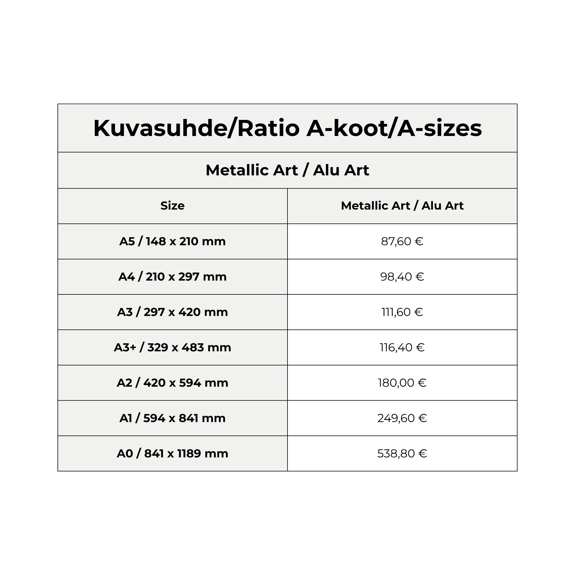 In Alu Art, the image is printed on Dibond, which has a smooth aluminum surface.
