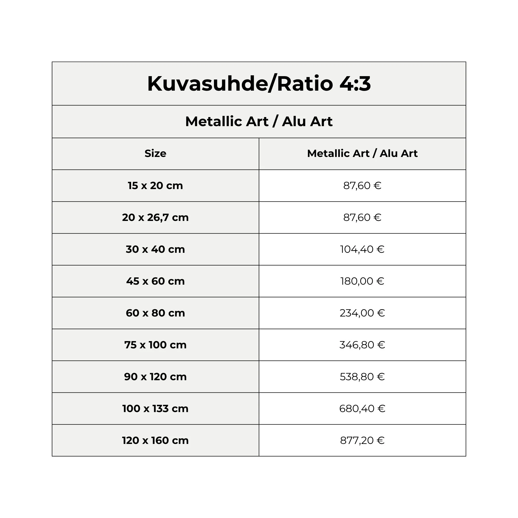 In Metallic Art, the image is printed on Dibond with a brushed aluminium surface.